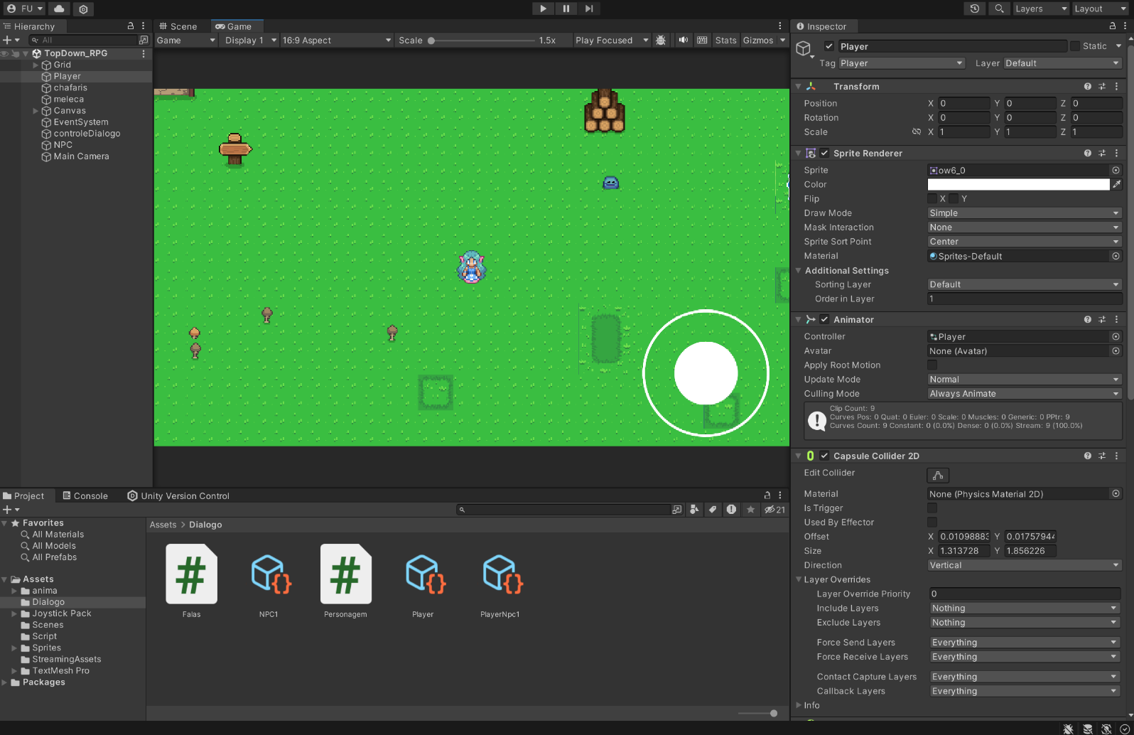 Algumas mensagens de erro irão aparecer, aguarde até a configuração de todos os scripts antes de tentar corrigir, pois alguns erros são devido à ausência de códigos em alguma classe ou falta de configuração do Inspector.