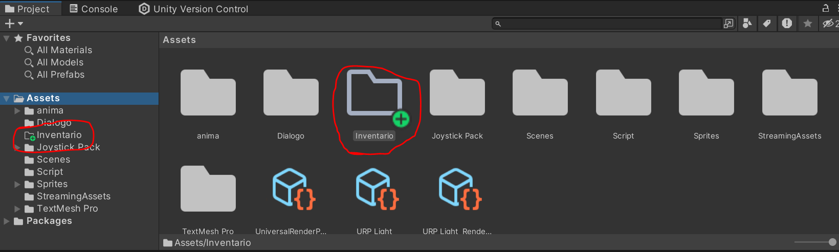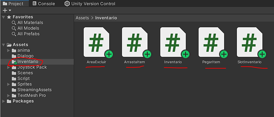 Crie uma pasta dentro de assets à Scripts para armazenar os scripts do Inventário, chame essa pasta de inventario.