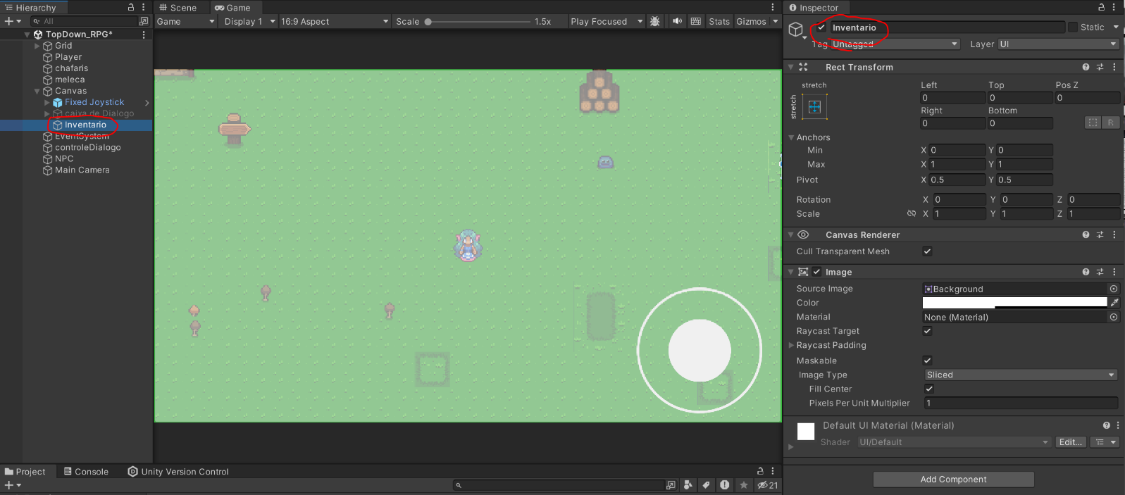 • Adicione uma Image no Panel inventário e nomeie ele como Slot.