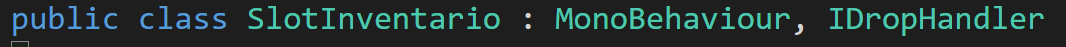 • IDropHandler: A interface IDropHandler é implementada para permitir que o slot detecte quando um item é solto nele. Isso faz parte do sistema de eventos do Unity, permitindo que o componente receba notificações quando o jogador realiza a ação de soltar um item.