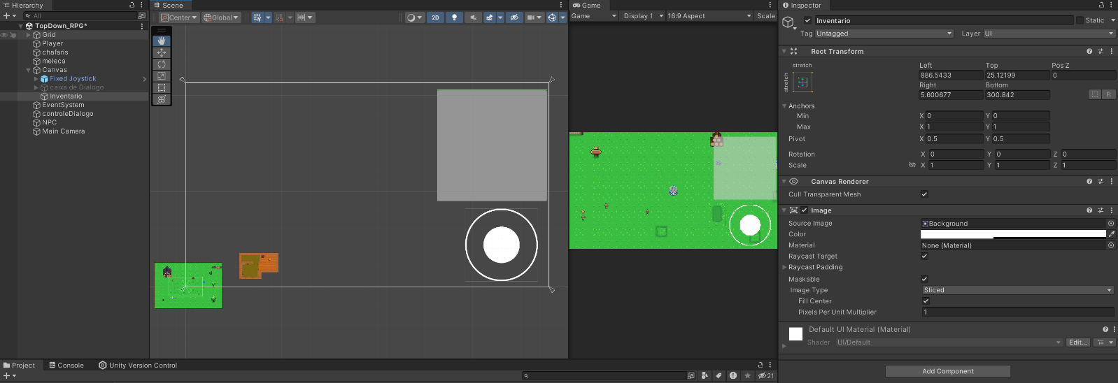 Vamos adicionar um componente do tipo Image, que será o modelo de slot para o item no inventário.