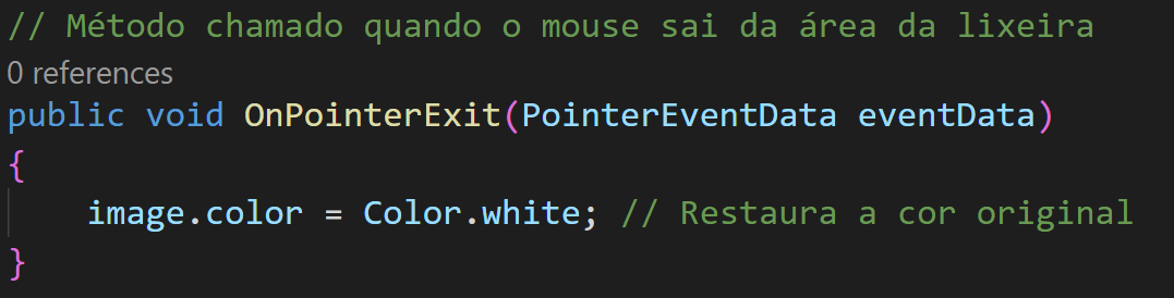 • IPointerExitHandler: Interface para capturar eventos quando o ponteiro do mouse sai da área da lixeira.